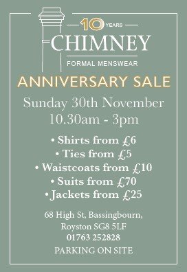If you have an event happening soon, want to impress at the upcoming Christmas party or have a wedding planned for 2026 give the Team at Chimney a call on 01763 252828 or email info@chimneymenswear.co.uk