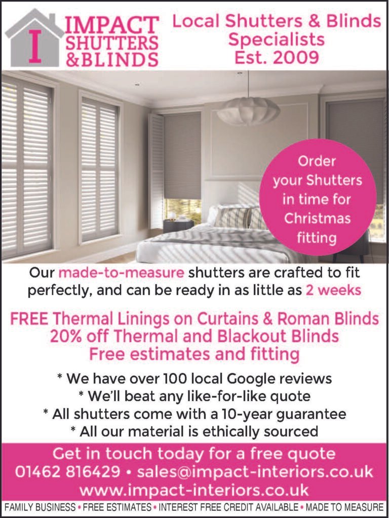 At Impact Shutters and Blinds, we’ve been helping homeowners transform their spaces since 2009. As a family business with over 15 years’ experience, we take pride in delivering quality products and a personal service our customers trust – with more than 100 glowing Google reviews to show for it. We supply and fit made-to-measure shutters, blinds, curtains, poles, and tracks, with hundreds of fabrics to choose from. Our range also includes insect screens, skylight and lantern blinds, plus outdoor shading solutions like bifold and sunshade awnings – all designed to make your home stylish, comfortable, and practical. Get in touch today for a free quote 01462 816429 sales@impact-interiors.co.uk www.impact-interiors.co.uk