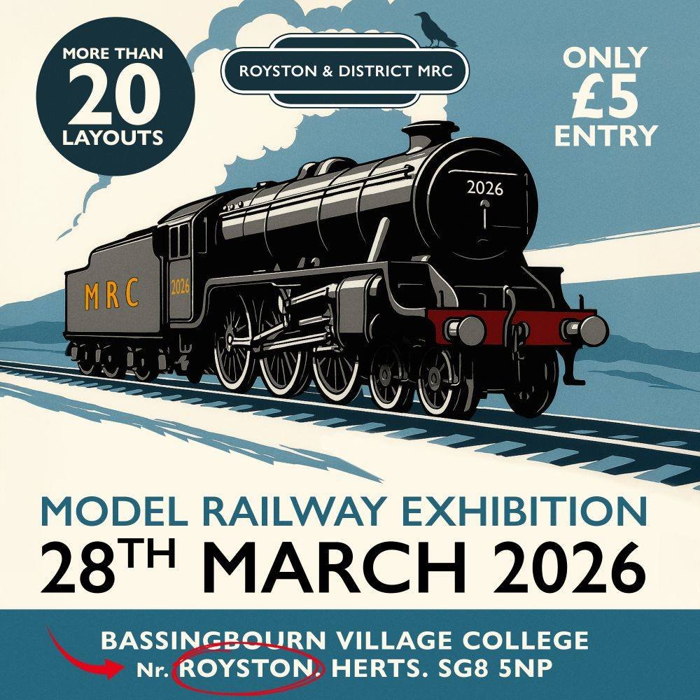 The Royston and District Model Railway Club exhibition will open at Bassingbourn Village College on Saturday 28th March, 10.30am-4pm.
