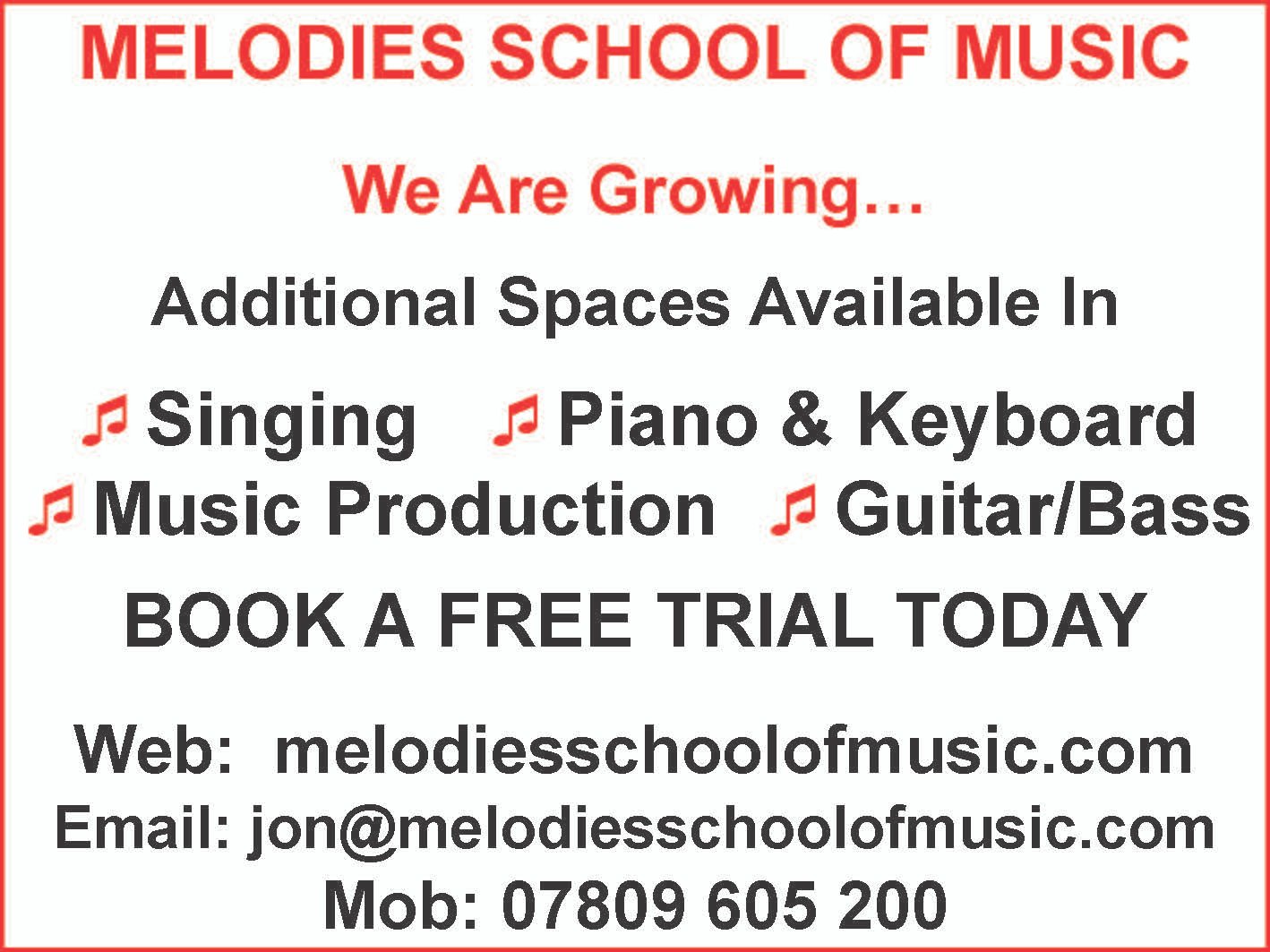 Learning music and creative subjects has never been more important in a busy & screen focussed world. At Melodies in Buntingford we are strongly committed to inspiring creativity, confidence and skill through high-quality music education. With a talented and enthusiastic teaching team the school offers an ideal environment for students of all ages to explore their musical potential. Founded by musician and educator Jon Bartlett, Melodies continues to expand its offering in response to the needs of the local community. This year sees the introduction of additional guitar & bass lessons, alongside expanded vocal classes covering rock, pop and songwriting skills. These courses are designed for both beginners and those looking to develop their creative voice. A key new development is the launch of a dedicated media suite for age 14+. Here, students can learn how to create podcasts and vlogs while also working towards recognised qualifications. This innovative space reflects Melodies’ unique position in combining traditional music teaching with modern digital skills. Friendly, inclusive and forward-thinking, Melodies in Buntingford offers a balanced approach to music education that blends traditional learning with modern innovation.